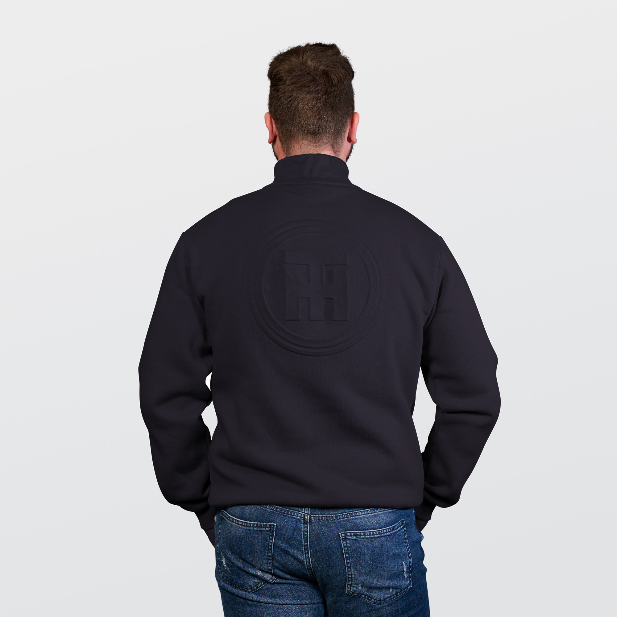 Veredelung: Vorderseite – Stick auf der Brust, Rückseite – Prägung